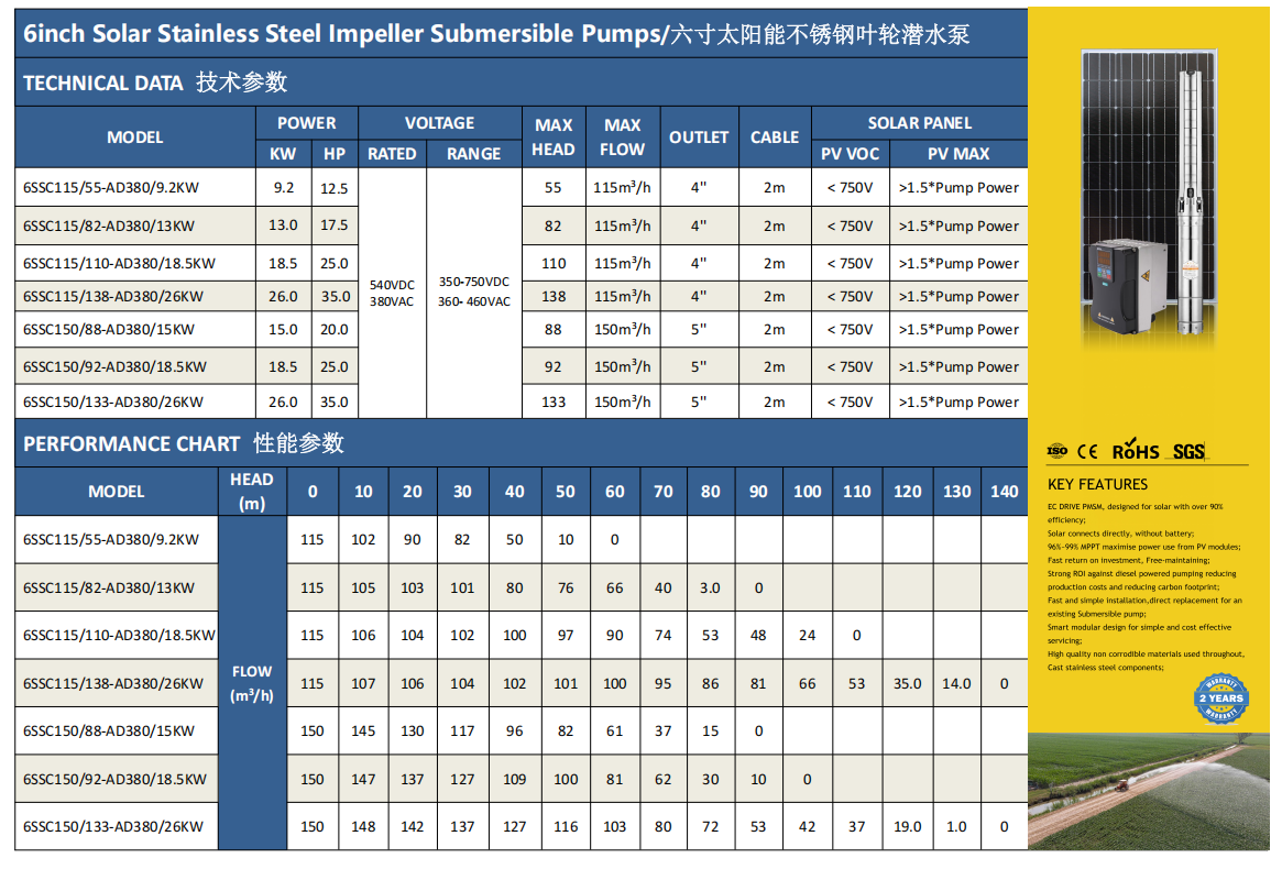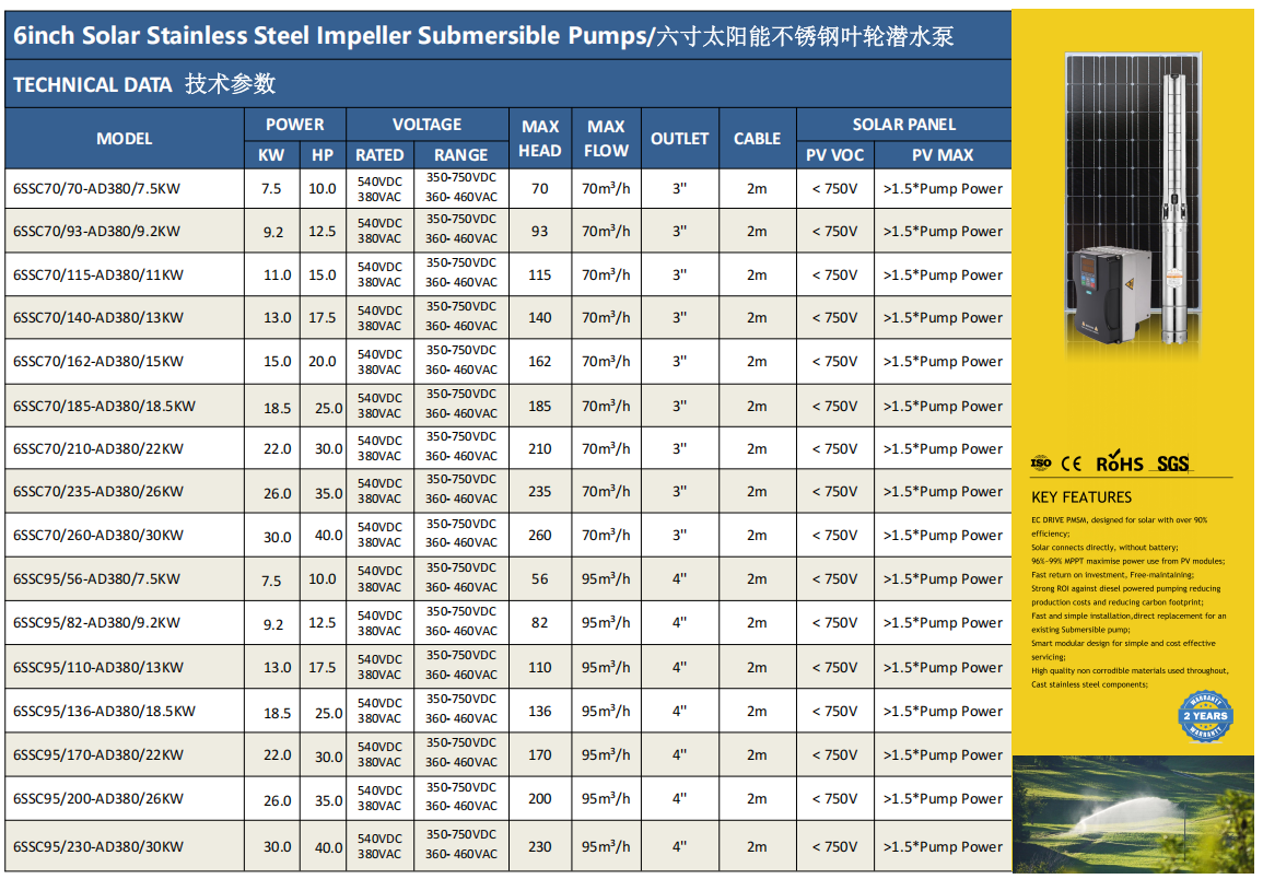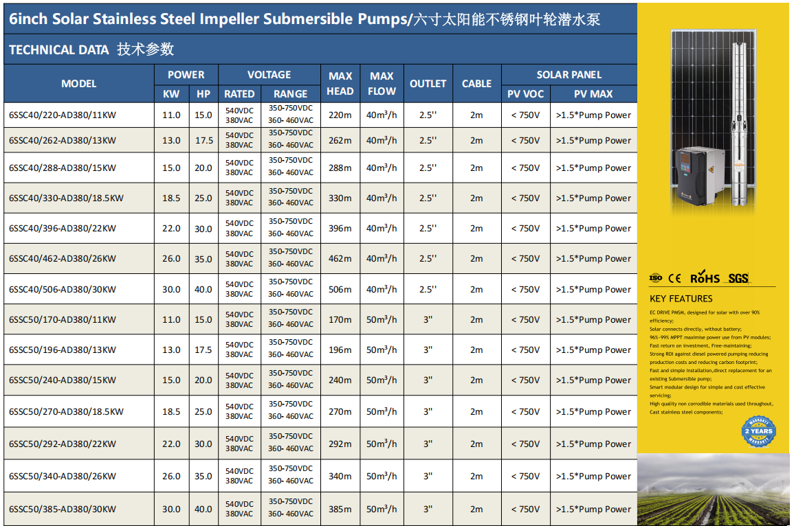 6inch AC/DC Hybrid Stainlees Steel Heavy Duty Pumps